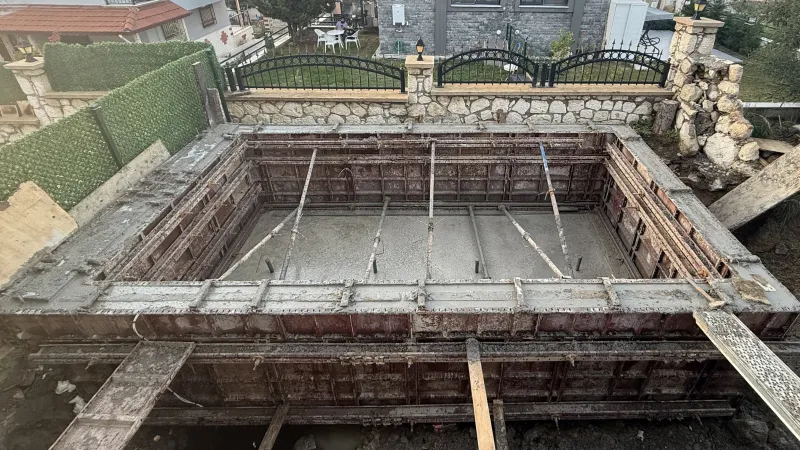 İzmir'in Seferihisar ilçesinde gerçekleştirdiğimiz 6x3 boyutlarındaki Savak Taşmalı betonarme havuzumuz.